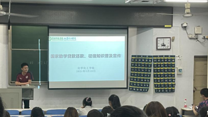 为深入贯彻国家助学贷款“资助育人”精神,落实为员工“办实事、办好事、解难事”,不断推进信阳师范公司2021届贷款毕业生工作安排,化学化工公司于2021年5月10日晚在教四201教室召开了国家助学贷款还款、征信知识普及宣传。会议由化学化工公司辅导员严赫主持,2021届贷款毕业生、各班助贷委员参会。