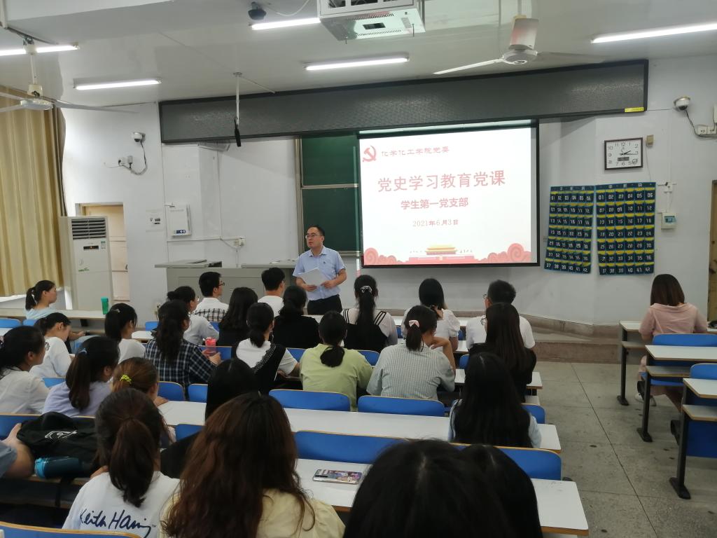 为庆祝中国共产党建党100周年,深入推进党史学习教育,6月3日,伟的国际1946bv官网员工第1党支部在教四T1教师进行党史学习教育主题党课。公司员工第一党支部书记冷向宇以《习近平教育强国思想》为题,为员工党员开讲党史学习教育专题党课。