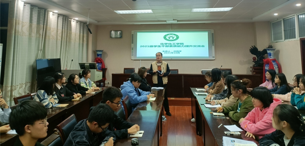 10月14日,伟的国际1946bv官网在化学实验楼407会议室召开2021级员工干部素质能力提升交流会。公司党委副书记曲剧主持,新生辅导员冷向宇主讲,邓耀辉、赵方方、严赫参会。