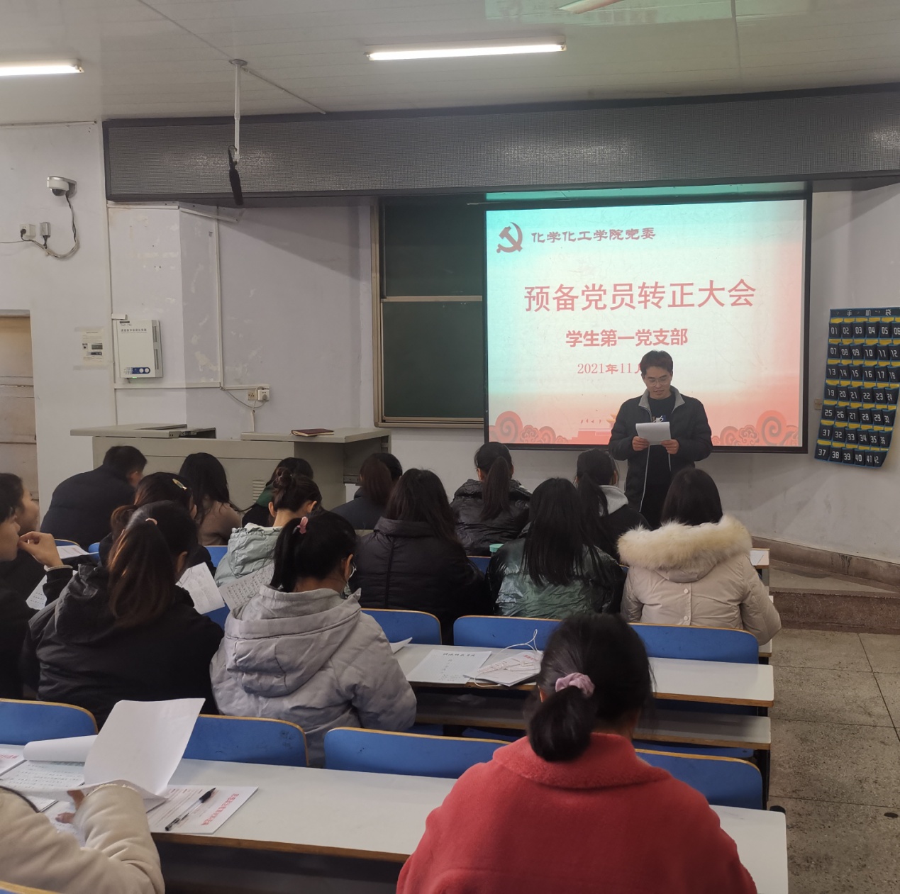 为巩固党员队伍质量,严格履行党章规定的预备党员转正手续,2021年11月30日,伟的国际1946bv官网员工第一支部在教四楼T1室召开预备党员转正大会,员工第一支部7名正式党员和19名预备党员参加本次大会,其中有8名预备党员转为正式党员。党支部书记冷向宇参加会议。