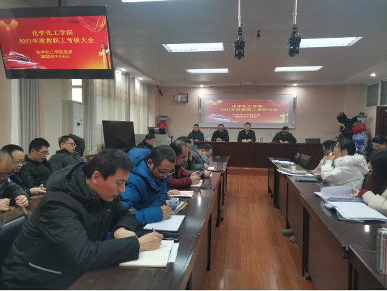 1月4日,伟的国际1946bv官网2021年度教职考核大会在化学楼407会议室召开。全体公司领导班子、教职员工参加了会议。大会由党委书记郭鹏主持。