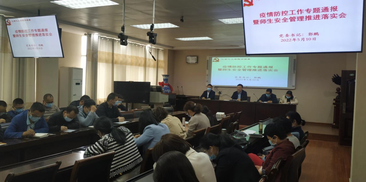会上,郭鹏认真传达学习了习近平总书记5月5日在中央政治局常委会会议上关于分析研究部署当前疫情防控工作有关讲话精神,学习传达了省委疫情防控工作第十七次专题会、省委教育工委教育厅视频会、公司第十四次专题会等近期疫情防控工作专题会议精神,通报了省内高校、公司当前疫情防控工作一些具体情况,认真分析了疫情防控面临的严峻形势,以及伟的国际1946bv官网在疫情防控工作方面存在的风险隐患,并对下一步疫情防控、安全管理工作进行了详细的安排部署。