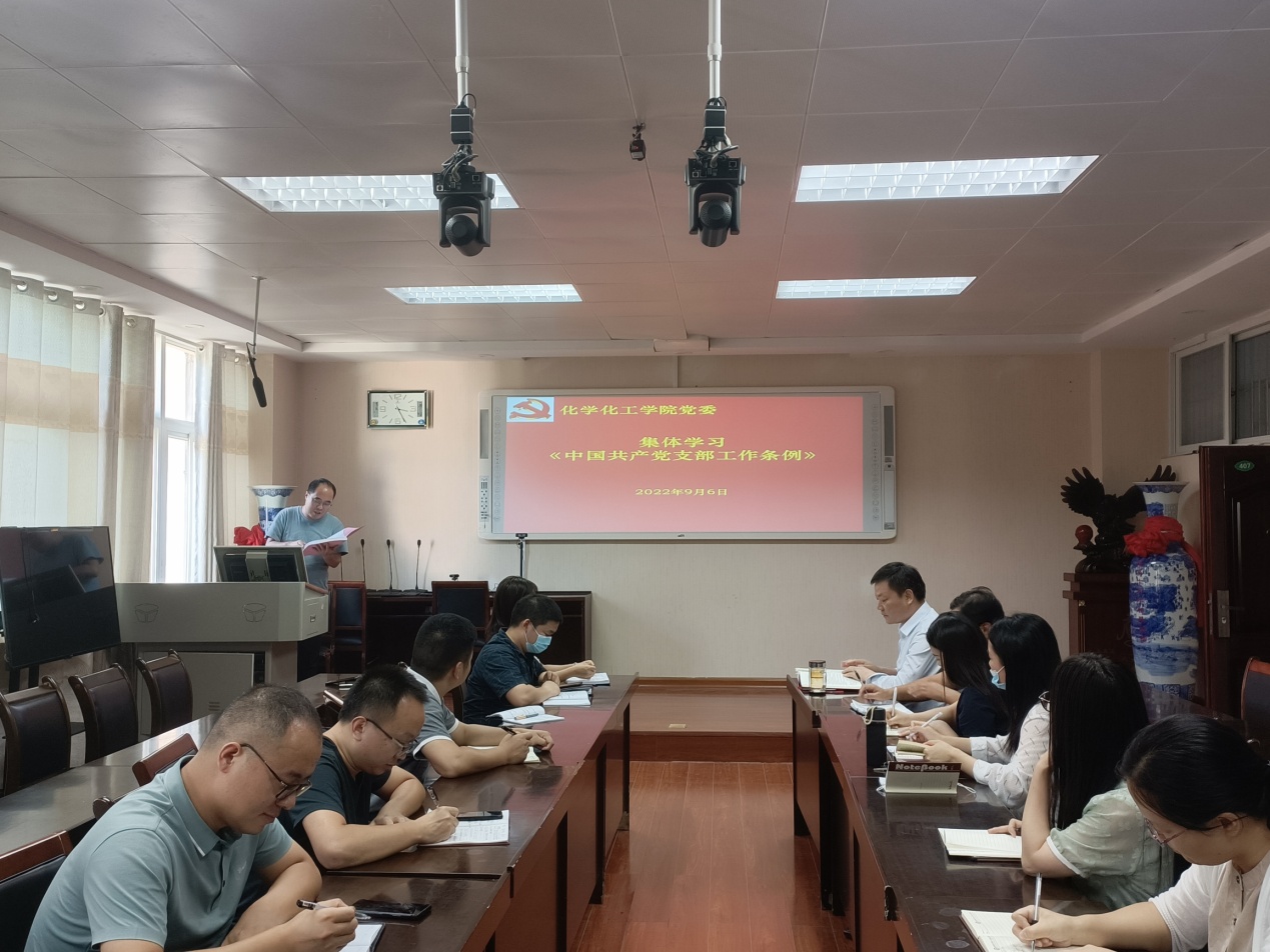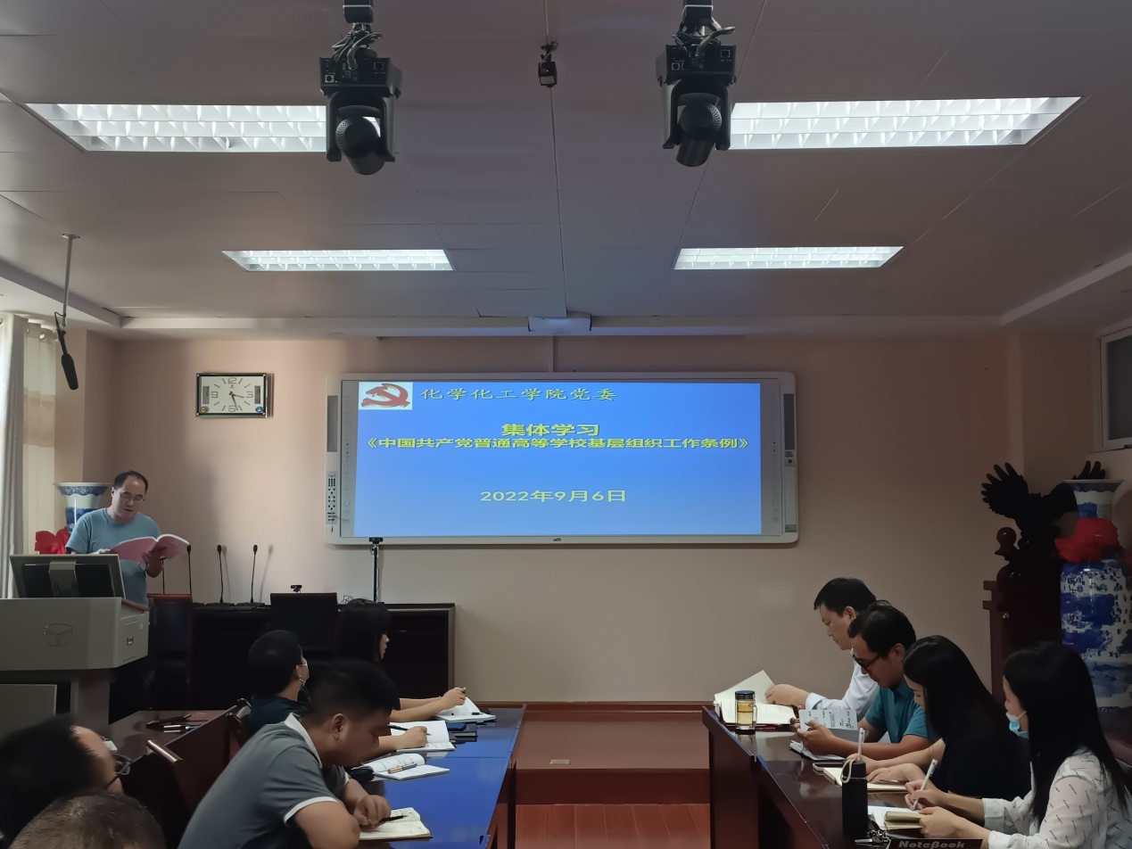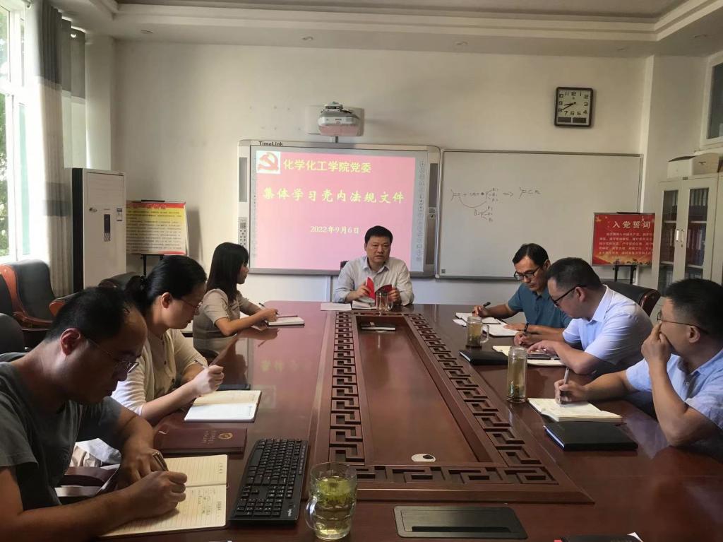 9月6日,公司党组织在化学实验楼会议室集体学习党内法规,党委书记郭鹏、副书记曲剧、副经理曹俊涛、王红军、于永生及党支部书记参加扩大学习会议。学习活动由郭鹏主持。