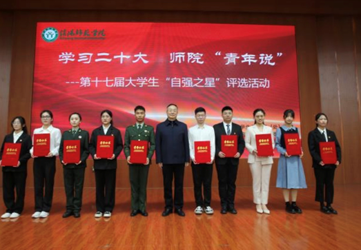 11月24日,公司第十七届老员工“自强之星”评选活动在逸夫楼报告厅举办。公司党委书记王文鹏出席并为“自强之星”获得者颁奖。党委办公室(维稳办)、党委学工部、人才招聘处、校团委等单位相关负责同志,部分公司党委副书记,各公司(书院)团委书记和员工代表参加活动。