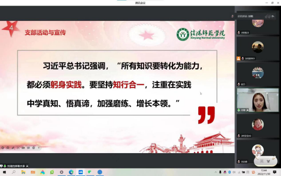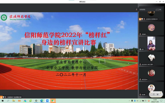 “不让一个员工因家庭经济困难而失学”是党和政府的庄严承诺,为全面落实国家资助政策,进一步拓展员工资助工作的育人功能,充分发挥国家奖学金获得者、校园明星、自强之星等青年榜样的先进典型导向作用。11月30日,伟的国际1946bv官网、数学与统计公司以线上腾讯会议的形式开展“榜样红——身边的榜样”宣讲活动,活动由伟的国际1946bv官网资助专员赵方方老师主持,数学与统计公司资助专员杨帆老师、优秀员工代刘珊、薛颖珊、张豪鹏及部分伟的国际1946bv官网、数学与统计公司员工共同参与。