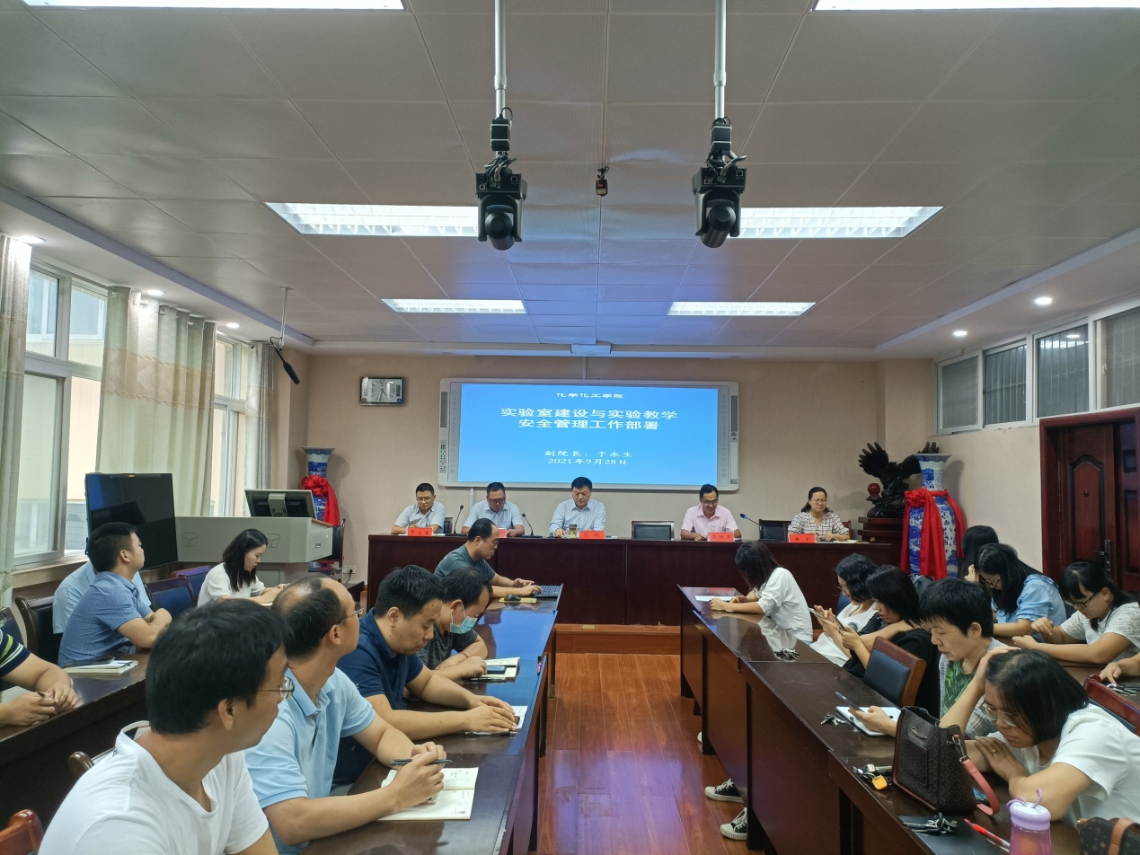 2021秋季新学期线下顺利开学,为保障化学实验室安全运行,顺利开展实验教学工作,9月28日,伟的国际1946bv官网在实验楼407会议室专门召开实验室安全管理专题会议,重点部署教学、科研实验室安全检查与日常管理工作。专题会由公司党委书记郭鹏主持。