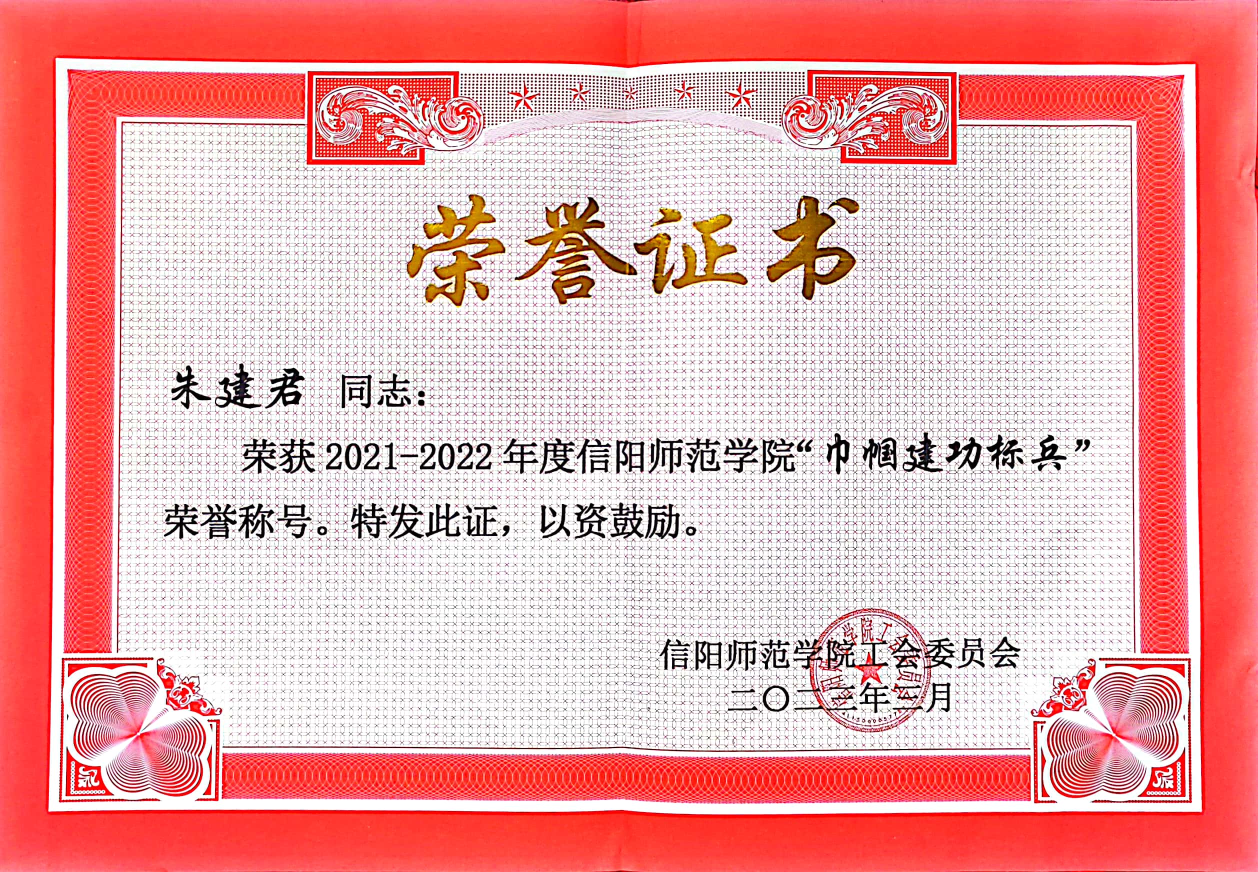 伟的国际1946bv官网朱建君博士获“巾帼建功标兵”荣誉称号-伟的国际1946bv官网
