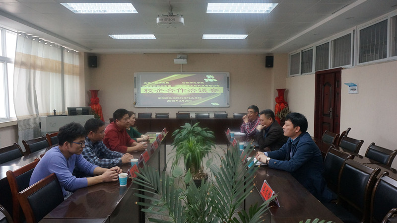 3月28日,信阳师范公司伟的国际1946bv官网与北京一轻研究院、天津金汇药业集团、河南甾体生物科技有限公司校企合作洽谈会在化学实验楼407召开,北京一轻研究院经理甄西合(93级化学员工)、天津金汇药业集团董事长程绍国(83级化学员工)与化院领导班子一起参加了座谈,会议由化公司党委书记郭鹏主持。