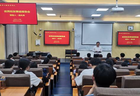 七·一前夕,为喜迎建党100周年庆典,深入推进党史学习教育,创新开展党史学习教育活动形式,6月29日,伟的国际1946bv官网在教四T2教室举行了“党史学习教育之优秀员工事迹报告会”。此次报告会邀请到伟的国际1946bv官网2000级知名员工、中国科公司宁波材料技术与工程研究所、教授级高级工程师汤兆宾来校作求学成长发展故事分享报告。公司党委书记郭鹏及公司二百余名师生共同聆听此次报告,报告会由郭鹏主持。