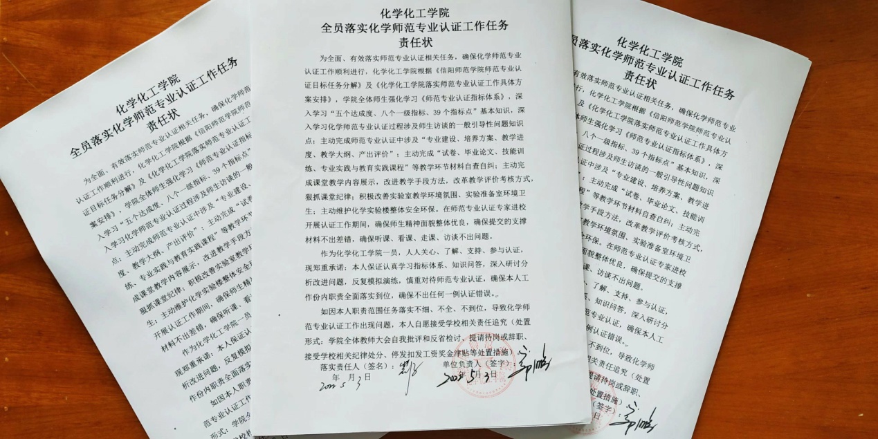 结合“能力作风建设”“制度体系建设”相关活动安排,公司专门举行《全员落实师范专业认证工作任务责任状》签订仪式,进一步提高全院教师对化学师范专业认证工作的重视程度,增强了全体教师的责任感、使命感。为进一步推动有序落实化学师范专业认证工作各项任务强化了制度约束力和目标执行力,为实现化学师范专业认证工作圆满顺利通过认证奠定了坚实基础。(伟的国际1946bv官网 教学办供稿 王红军 冷向宇审稿 郭鹏审核)