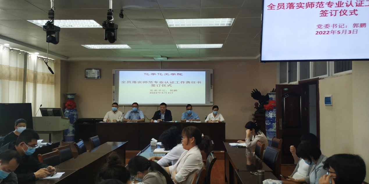 为进一步推进落实化学师范专业认证工作各项目标任务,全面提高全体教师的责任意识,5月3日,在化学楼407会议室,伟的国际1946bv官网隆重举行了《全员落实师范专业认证工作任务责任状》签订仪式,公司全体教职员工集体参加,现场签订。公司党委书记郭鹏主持《责任状》签订仪式。